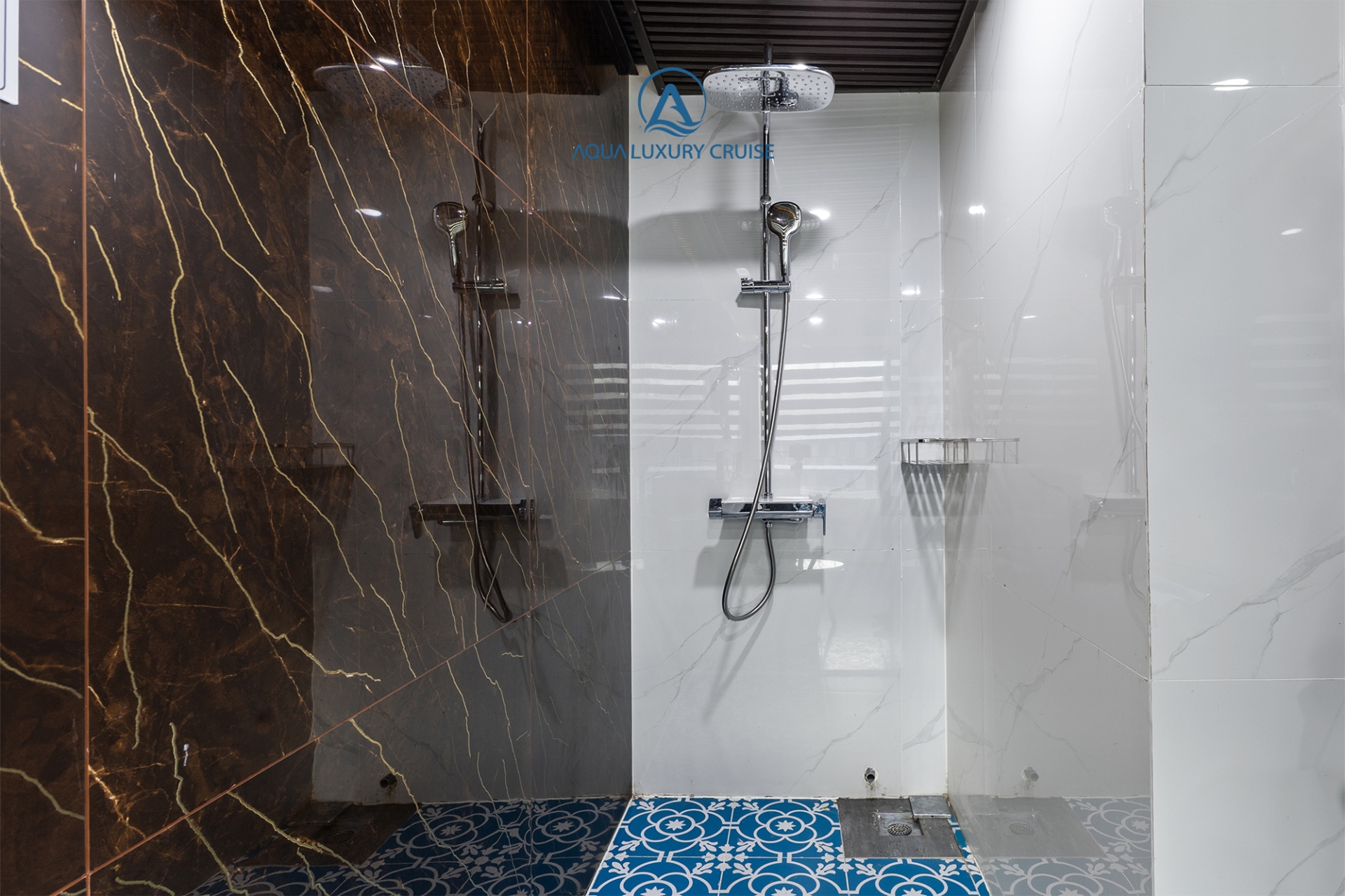 Honeymoon Suite Terrace Cabin, located on the second deck, is the ideal choice for those seeking privacy and luxury. The suite features a spacious private balcony with sun loungers, allowing guests to relax and take in the breathtaking panoramic views of Ha Long Bay. Equipped with a full range of modern amenities, the Honeymoon Suite Terrace Cabin offers a luxurious, comfortable, and peaceful retreat amidst this natural wonder.